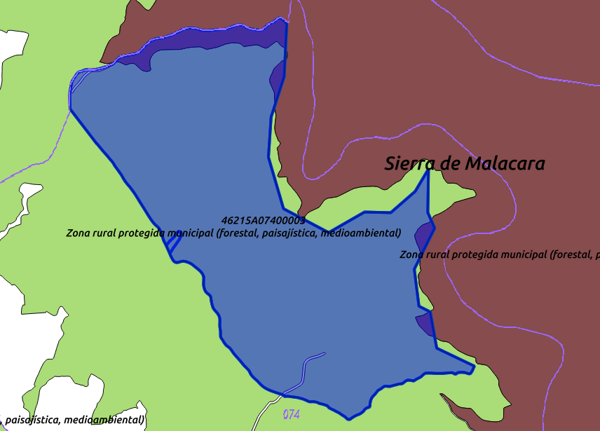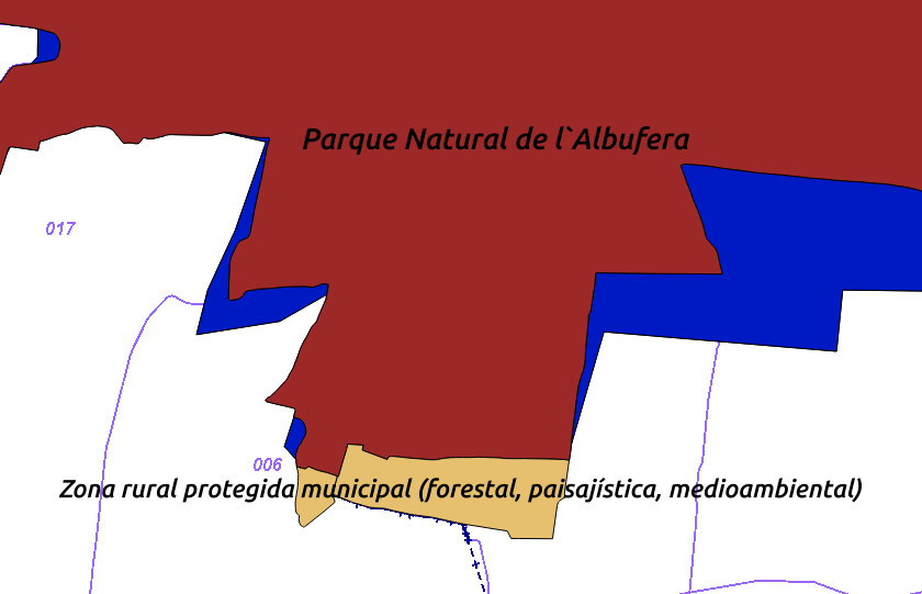 Variable t: coeficiente de ponderación según el régimen de usos y actividades. Se aplicará únicamente cuando acredite que, según los instrumentos de ordenación territorial y urbanística, en los terrenos se permite un régimen de usos y actividades diferentes a los agropecuarios o forestales que incrementan el valor. Esta variable t esta comprendida entre unos valores de 0 y 7, siendo el valor mayor cuando mayor sea tal influencia. Esta cartografia de Planeamiento Urbanístico es obtenida de forma individual en cada Comunidad Autónoma en su respectiva plataforma oficial. Por ejemplo, para la Comunidad Valenciana es obtenida en la plataforma de Terrasit.